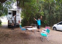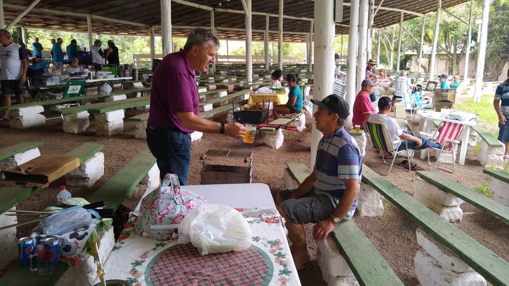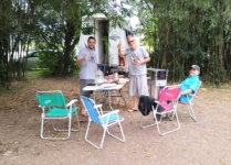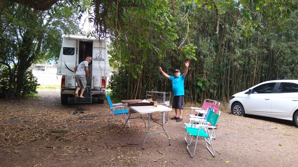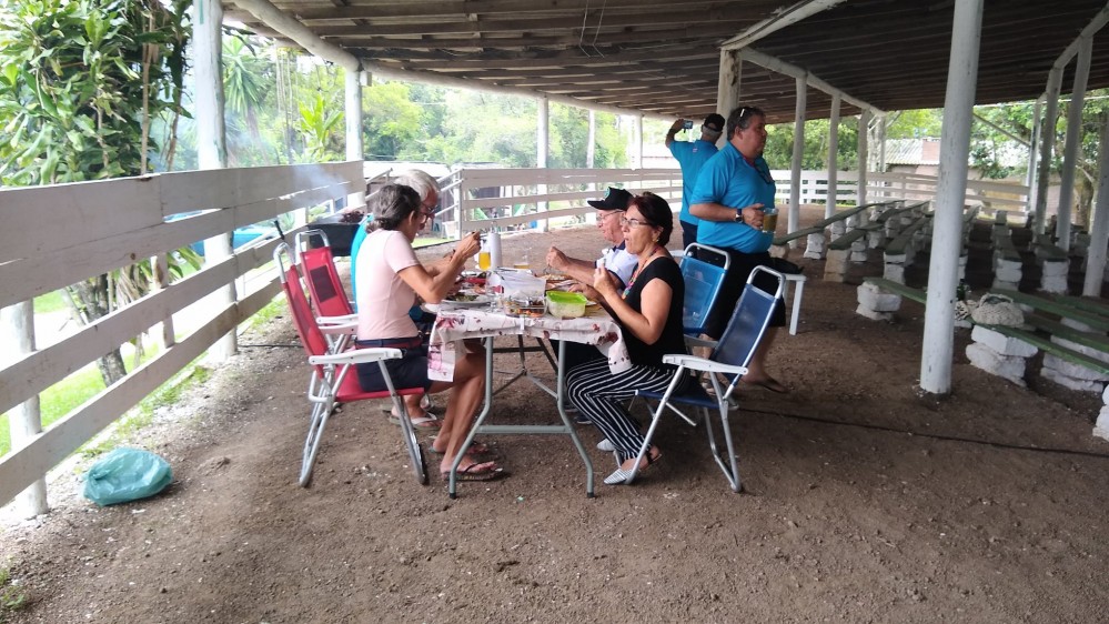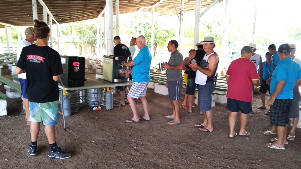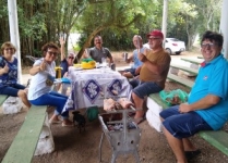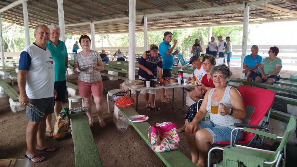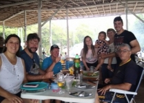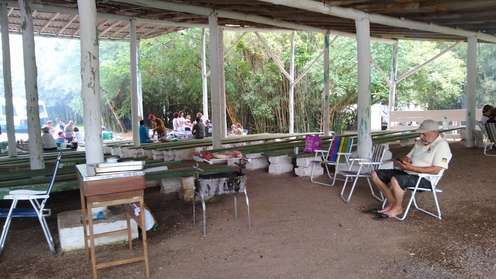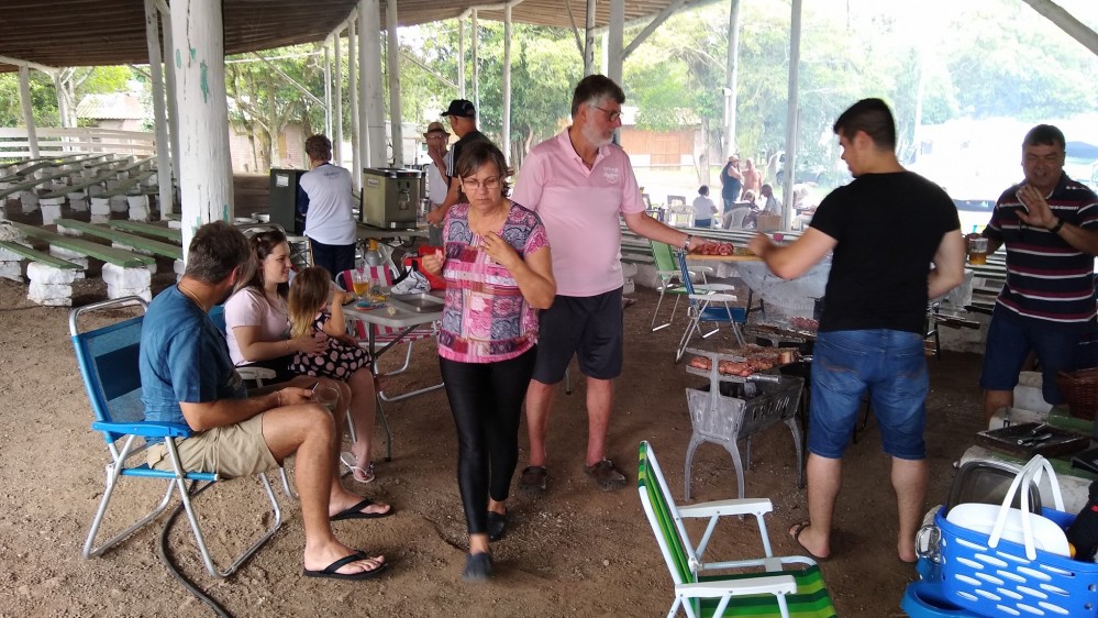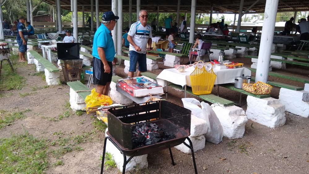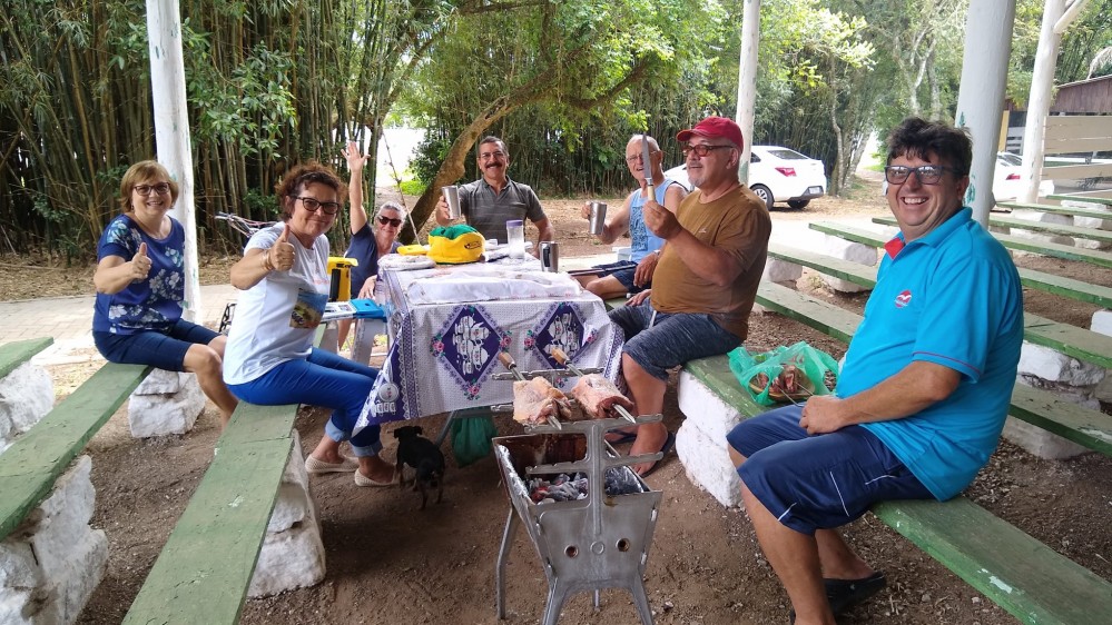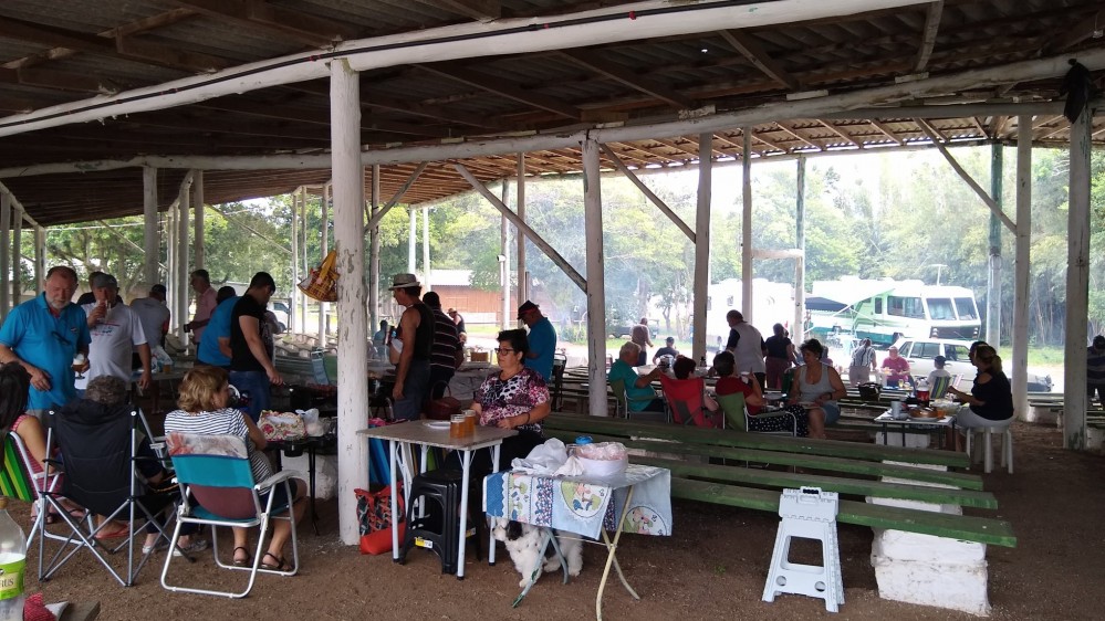 O "Fogo Amigo", é sempre bom, pois reúne pessoas. No caso do almoço de sábado, no Encontro de Intercâmbio, os participantes levaram sua carne, saladas e utensílios, enquanto que o Rancho Móvel contribuiu com o chope.